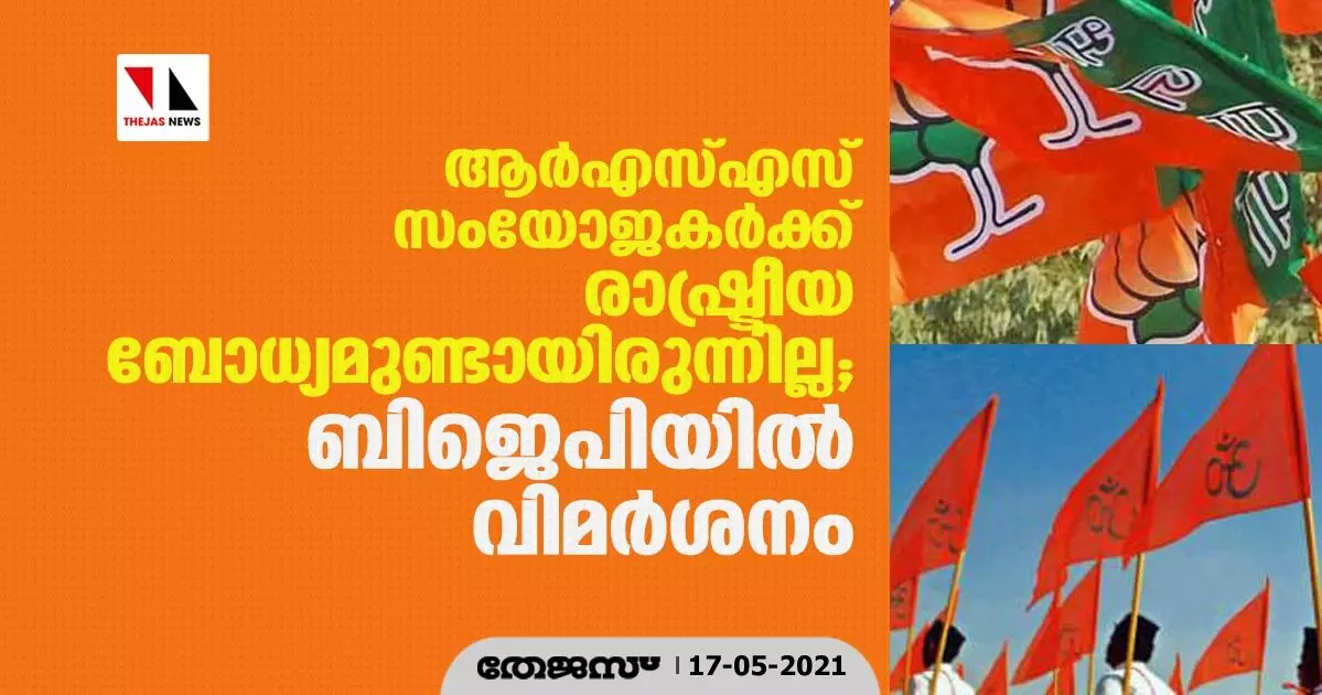 ആര്എസ്എസ് സംയോജകര്ക്ക് രാഷ്ട്രീയ ബോധ്യമുണ്ടായിരുന്നില്ല; ബിജെപിയില് വിമര്ശനം