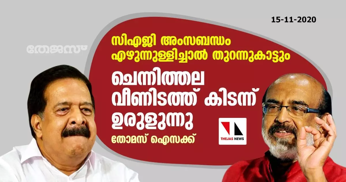 സിഎജി അംസബന്ധം എഴുന്നള്ളിച്ചാല് തുറന്നുകാട്ടും; ചെന്നിത്തല വീണിടത്ത് കിടന്ന് ഉരുളുന്നു: തോമസ് ഐസക്ക്