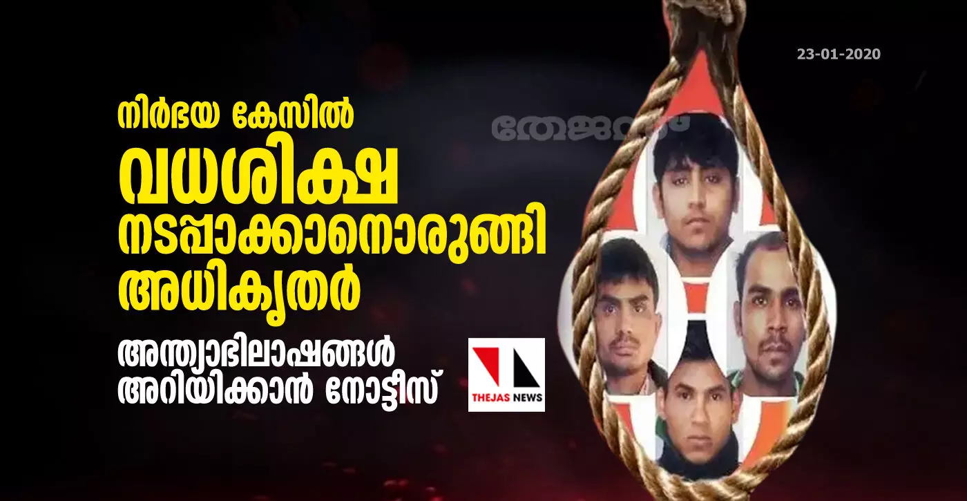 നിര്ഭയ കേസില് വധശിക്ഷ നടപ്പാക്കാനൊരുങ്ങി അധികൃതര്; അന്ത്യാഭിലാഷങ്ങള് അറിയിക്കാന് നോട്ടീസ്