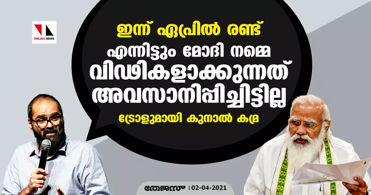 ഇന്ന് ഏപ്രില് രണ്ട്: എന്നിട്ടും മോദി ജനങ്ങളെ വിഢികളാക്കുന്നത് അവസാനിപ്പിച്ചിട്ടില്ലെന്ന് കുനാല് കമ്ര