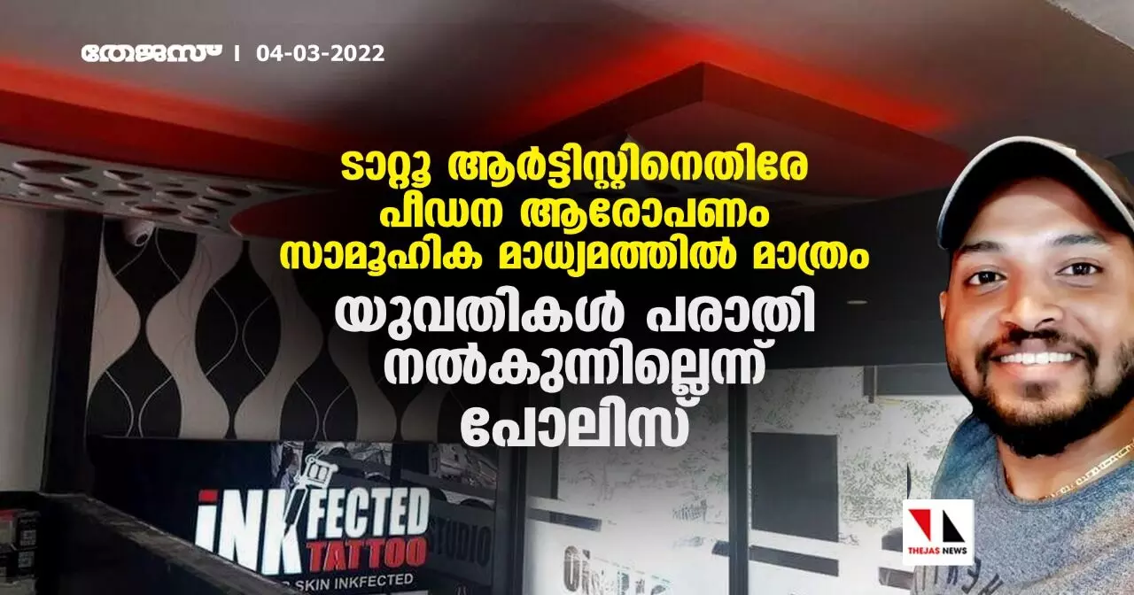 ടാറ്റൂ ആർട്ടിസ്റ്റിനെതിരേ പീഡന ആരോപണം സാമൂഹിക മാധ്യമത്തിൽ മാത്രം; യുവതികൾ പരാതി നൽകുന്നില്ലെന്ന് പോലിസ്
