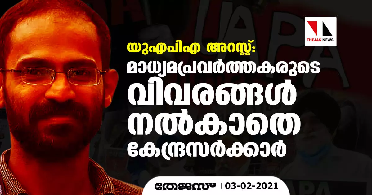 യുഎപിഎ അറസ്റ്റ്: മാധ്യമപ്രവര്ത്തകരുടെ വിവരങ്ങള് നല്കാതെ കേന്ദ്രസര്ക്കാര്