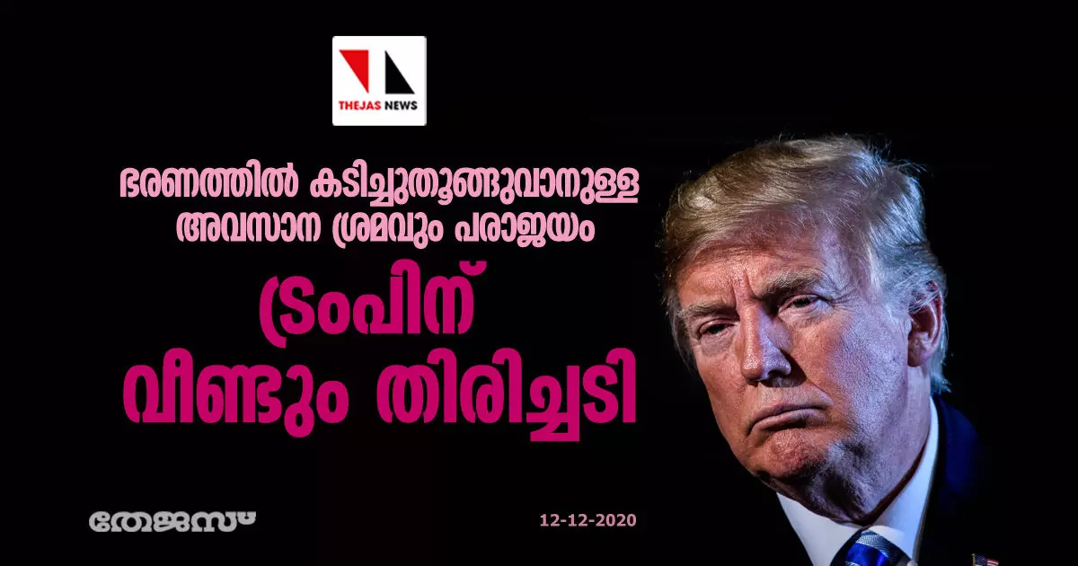 ട്രംപിന് വീണ്ടും തിരിച്ചടി; ഭരണത്തില് കടിച്ചുതൂങ്ങുവാനുള്ള അവസാന ശ്രമവും പരാജയം
