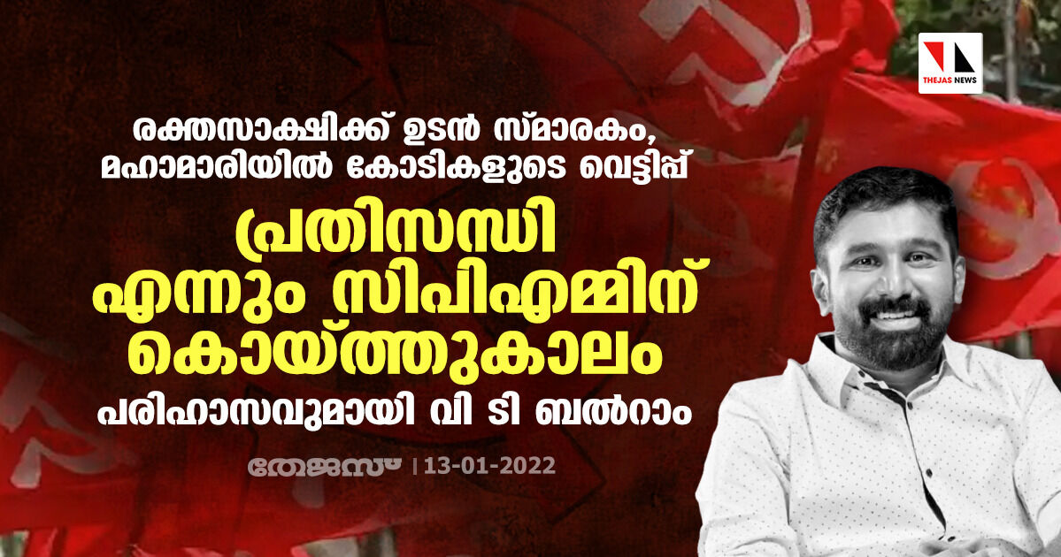രക്തസാക്ഷിക്ക് ഉടന് സ്മാരകം, മഹാമാരിയില് കോടികളുടെ വെട്ടിപ്പ്; പ്രതിസന്ധി എന്നും സിപിഎമ്മിന് കൊയ്ത്തുകാലം- പരിഹാസവുമായി വി ടി ബല്റാം