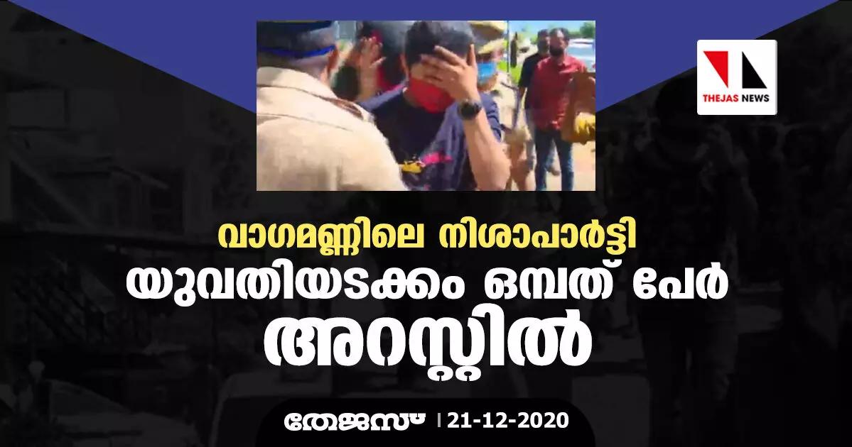 വാഗമണ്ണിലെ നിശാപാര്ട്ടി: യുവതിയടക്കം ഒമ്പത് പേര് അറസ്റ്റില്