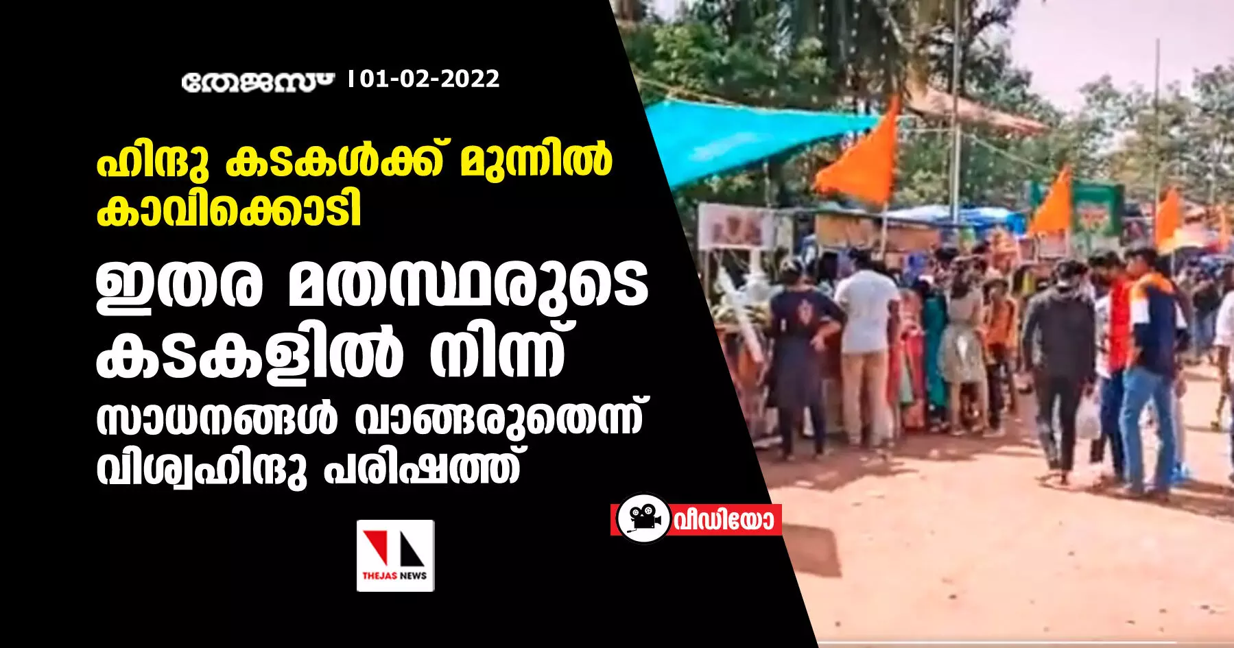 ഹിന്ദു കടകള്ക്ക് മുന്നില് കാവിക്കൊടി; ഇതര മതസ്ഥരുടെ കടകളില് നിന്ന് സാധനങ്ങള് വാങ്ങരുതെന്ന് വിശ്വഹിന്ദു പരിഷത്ത്(വീഡിയോ)