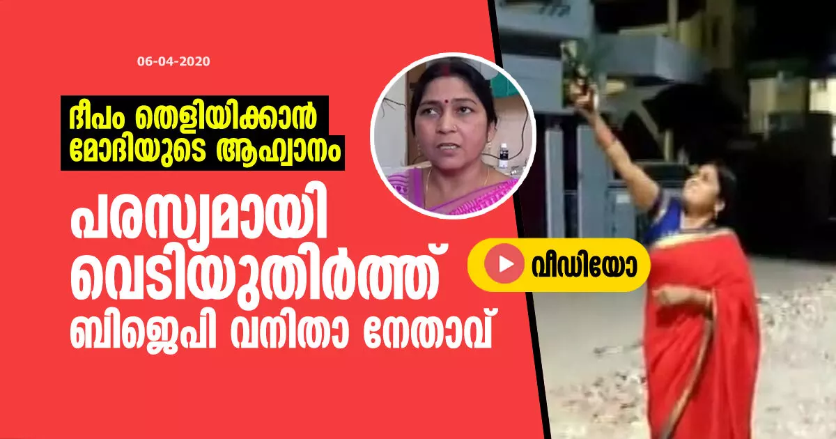 ദീപം തെളിയിക്കാന് മോദിയുടെ ആഹ്വാനം; പരസ്യമായി വെടിയുതിര്ത്ത് ബിജെപി വനിതാ നേതാവ്(വീഡിയോ)