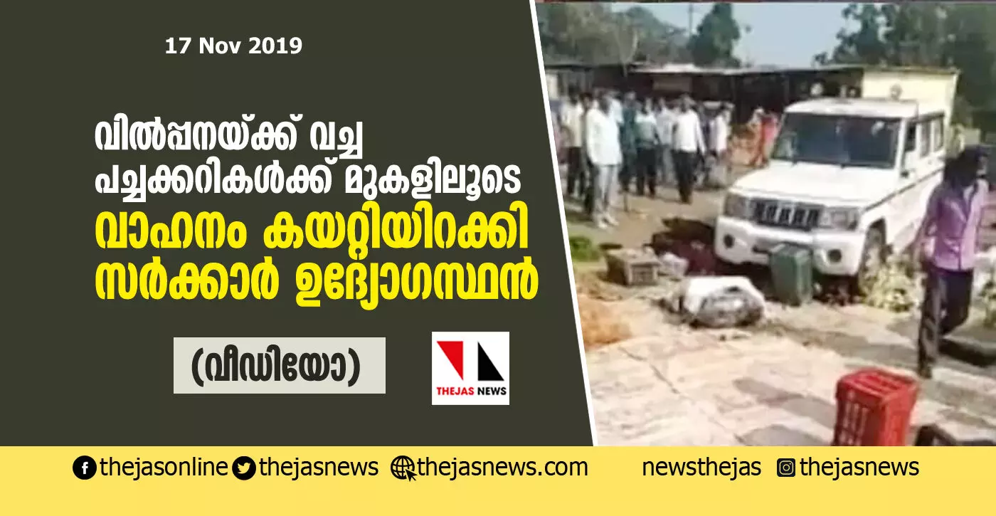 വില്പ്പനയ്ക്ക് വച്ച പച്ചക്കറികള്ക്ക് മുകളിലൂടെ വാഹനം കയറ്റിയിറക്കി സര്ക്കാര് ഉദ്യോഗസ്ഥന് (വീഡിയോ)