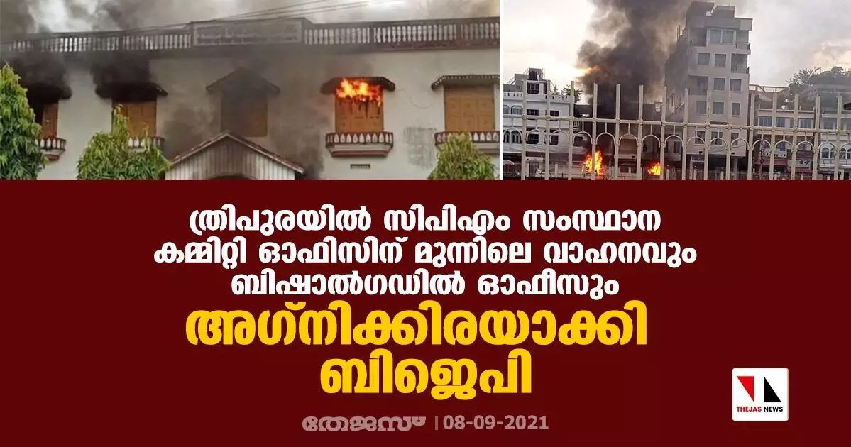 ത്രിപുരയില് സിപിഎം സംസ്ഥാന കമ്മിറ്റി ഓഫീസിന് മുന്നിലെ വാഹനവും ബിഷാൽഗഡിൽ ഓഫീസും അഗ്നിക്കിരയാക്കി ബിജെപി
