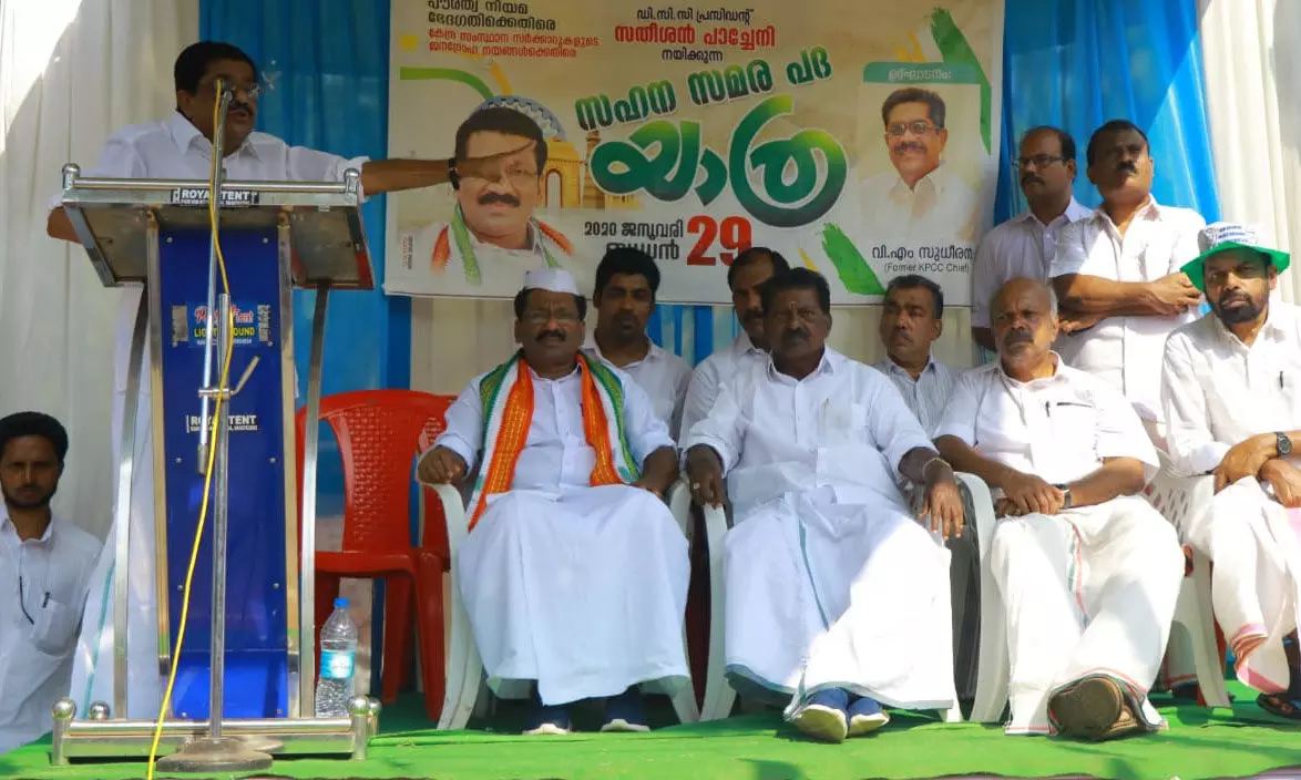 കെ പി ഹാഷിം അധ്യക്ഷത വഹിച്ചു. പദയാത്ര നായകന് ഡിസിസി പ്രസിഡന്റ് സതീശന് പാച്ചേനി, കെപിസിസി ജനറല് സെക്രട്ടറി കെ സുരേന്ദ്രന്, മാര്ട്ടിന് ജോര്ജ്, വി സുരേന്ദ്രന്, ചന്ദ്രന് തില്ലങ്കേരി, കെ പി സാജു, സി വി എ ജലീല്, സുരേഷ് ബാബു എളയാവൂര്, കെ സി മുഹമ്മദ് ഫൈസല്, ടി ജയകൃഷ്ണന്, രാജീവന് എളയാവൂര്, രജിത്ത് നാറാത്ത്, എം പി വേലായുധന്, പൊന്നമ്പത്ത് ചന്ദ്രന്, പി കെ സതീശന്, സന്തോഷ് കണ്ണമ്പള്ളി സംസാരിച്ചു.