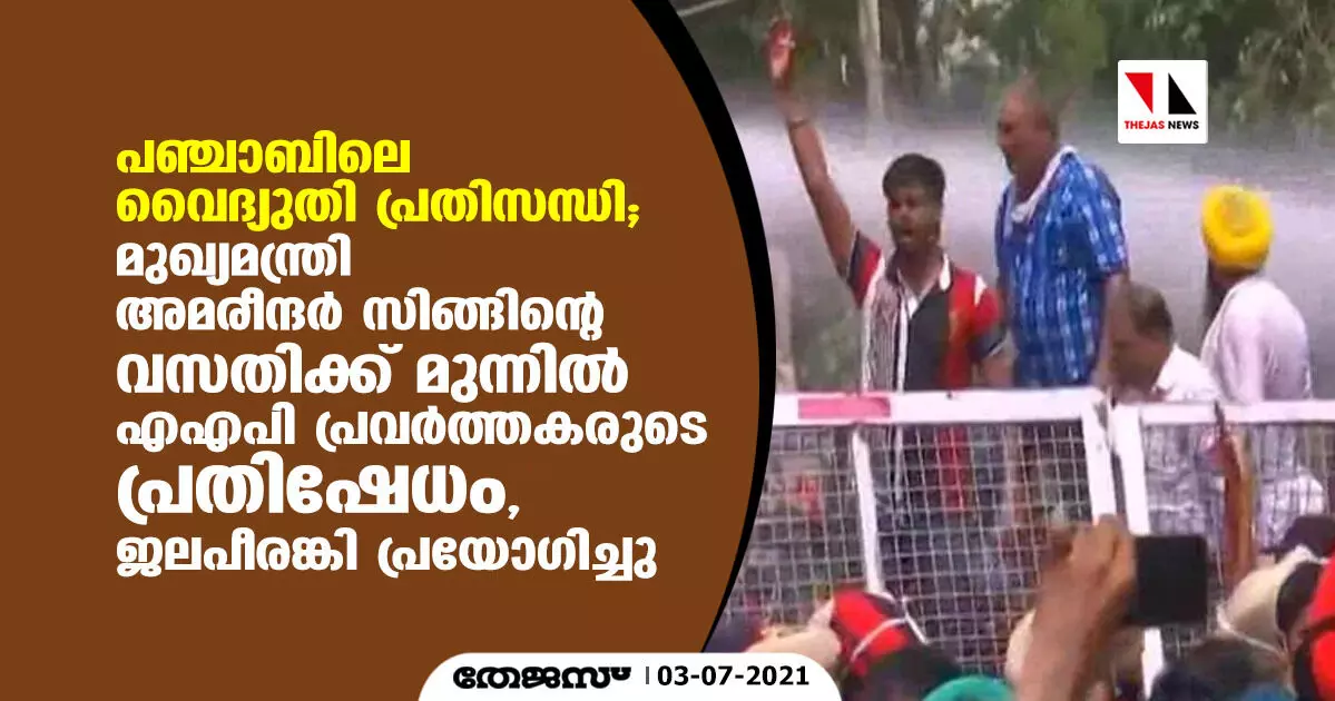 പഞ്ചാബിലെ വൈദ്യുതി പ്രതിസന്ധി; മുഖ്യമന്ത്രി അമരീന്ദര് സിങ്ങിന്റെ വസതിക്ക് മുന്നില് എഎപി പ്രവര്ത്തകരുടെ പ്രതിഷേധം, ജലപീരങ്കി പ്രയോഗിച്ചു