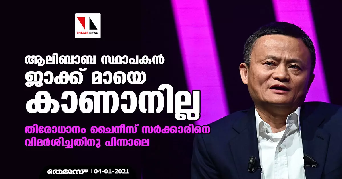 ആലിബാബ സ്ഥാപകന് ജാക്ക് മായെ കാണാനില്ല; തിരോധാനം ചൈനീസ് സര്ക്കാരിനെ വിമര്ശിച്ചതിനു പിന്നാലെ