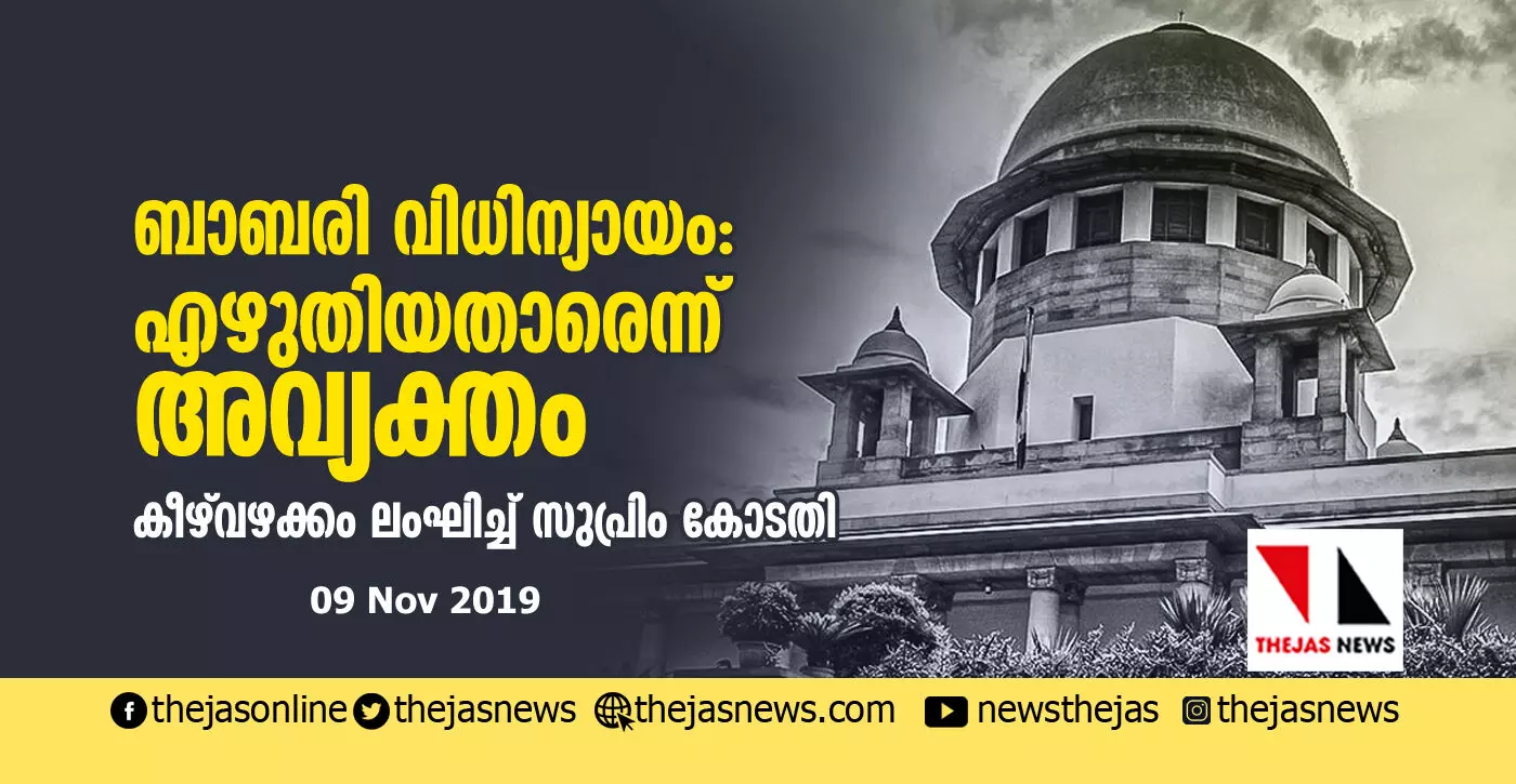 ബാബരി വിധിന്യായം എഴുതിയത് ആരെന്നത് അജ്ഞാതം; കീഴ്വഴക്കം ലംഘിച്ച് സുപ്രിംകോടതി