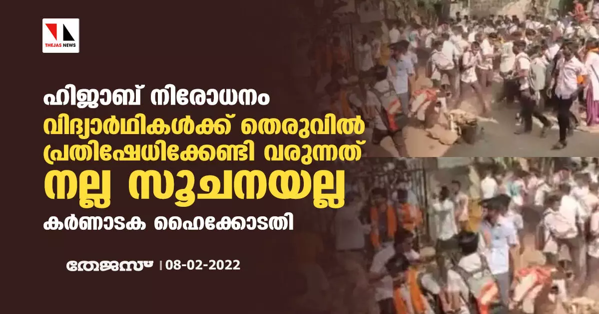 ഹിജാബ് നിരോധനം: വിദ്യാർഥികൾക്ക് തെരുവിൽ പ്രതിഷേധിക്കേണ്ടി വരുന്നത് നല്ല സൂചനയല്ല: കർണാടക ഹൈക്കോടതി