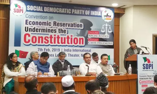 സാമ്പത്തിക സംവരണം നടപ്പിലാക്കിയതിലൂടെ മോദി സര്ക്കാര് രാജ്യത്തെ 50 വര്ഷം പിന്നോട്ടടിപ്പിച്ചെന്ന് സെമിനാറില് അധ്യക്ഷത വഹിച്ച് സംസാരിച്ച എസ്ഡിപിഐ ദേശീയ പ്രസിഡന്റ് എം കെ ഫൈസി പറഞ്ഞു. രാജ്യത്തെ പിന്നാക്ക വിഭാഗങ്ങള് വര്ഷങ്ങള് നീണ്ട പോരാട്ടത്തിലൂടെ നേടിയെടുത്ത അവകാശങ്ങളാണ് കേന്ദ്ര സര്ക്കാര് നിമിഷ നേരം കൊണ്ട് തകര്ത്തതെന്നും അദ്ദേഹം പറഞ്ഞു.