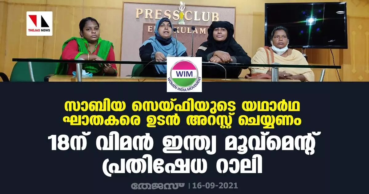 സാബിയ സൈഫിയുടെ യഥാര്ഥ ഘാതകരെ ഉടന് അറസ്റ്റ് ചെയ്യണം ; 18ന് വിമന് ഇന്ത്യ മൂവ്മെന്റ് പ്രതിഷേധ റാലി നടത്തും