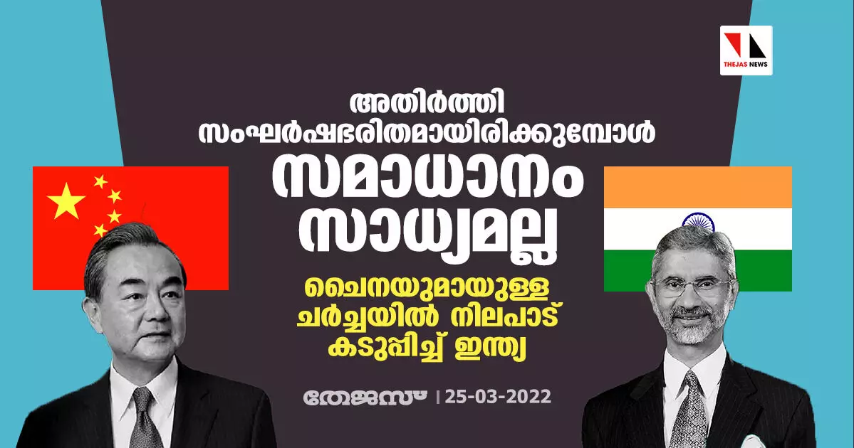 അതിര്ത്തി സംഘര്ഷഭരിതമായിരിക്കുമ്പോള് സമാധാനം സാധ്യമല്ല; ചൈനയുമായുള്ള ചര്ച്ചയില് നിലപാട് കടുപ്പിച്ച് ഇന്ത്യ