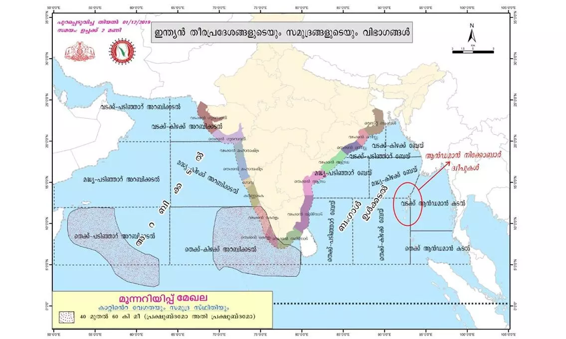 തിരുവനന്തപുരം: തെക്കുപടിഞ്ഞാറന് അറബിക്കടലിനോട് ചേര്ന്നുള്ള ഇന്ത്യന് മഹാസമുദ്രത്തിന്റെ ഭൂമധ്യരേഖ പ്രദേശങ്ങളില് രൂപംകൊണ്ട ന്യൂനമര്ദ്ദത്തെ തുടര്ന്ന് നാലു ജില്ലകളില് ഇന്ന് യെല്ലോ അലര്ട്ട് പ്രഖ്യാപിച്ചു. എറണാകുളം, ഇടുക്കി, മലപ്പുറം, കോഴിക്കോട് ജില്ലകളിലാണ് തിങ്കളാഴ്ച യെല്ലോ അലര്ട്ട് പ്രഖ്യാപിച്ചത്. ലക്ഷ്വദീപിനും തെക്ക് കിഴക്ക് അറബിക്കടലിനും മുകളിലായി രൂപംകൊണ്ട ന്യൂനമര്ദ്ദത്തിന്റെ സഞ്ചാരപാത നിശ്ചയിച്ചിട്ടില്ലെങ്കിലും തെക്കുപടിഞ്ഞാറ് അറബിക്കടല്, ലക്ഷദ്വീപ് മേഖല, കേരള തീരം, കര്ണാടക തീരം എന്നിവിടങ്ങളില് മല്സ്യത്തൊഴിലാളികള് കടലില്പോവരുതെന്ന് കാലാവസ്ഥ നിരീക്ഷണകേന്ദ്രം മുന്നറിയിപ്പ് നല്കി. ഇവിടങ്ങളില്, മണിക്കൂറില് 40 മുതല് 50 വരെ കിലോമീറ്റര് വേഗതയില് ശക്തമായ കാറ്റ് വീശാന് സാധ്യതയുണ്ടെന്ന് കേരള സംസ്ഥാന ദുരന്ത നിവാരണ അതോറിറ്റിയും കേന്ദ്ര കാലാവസ്ഥ വകുപ്പും അറിയിച്ചു.