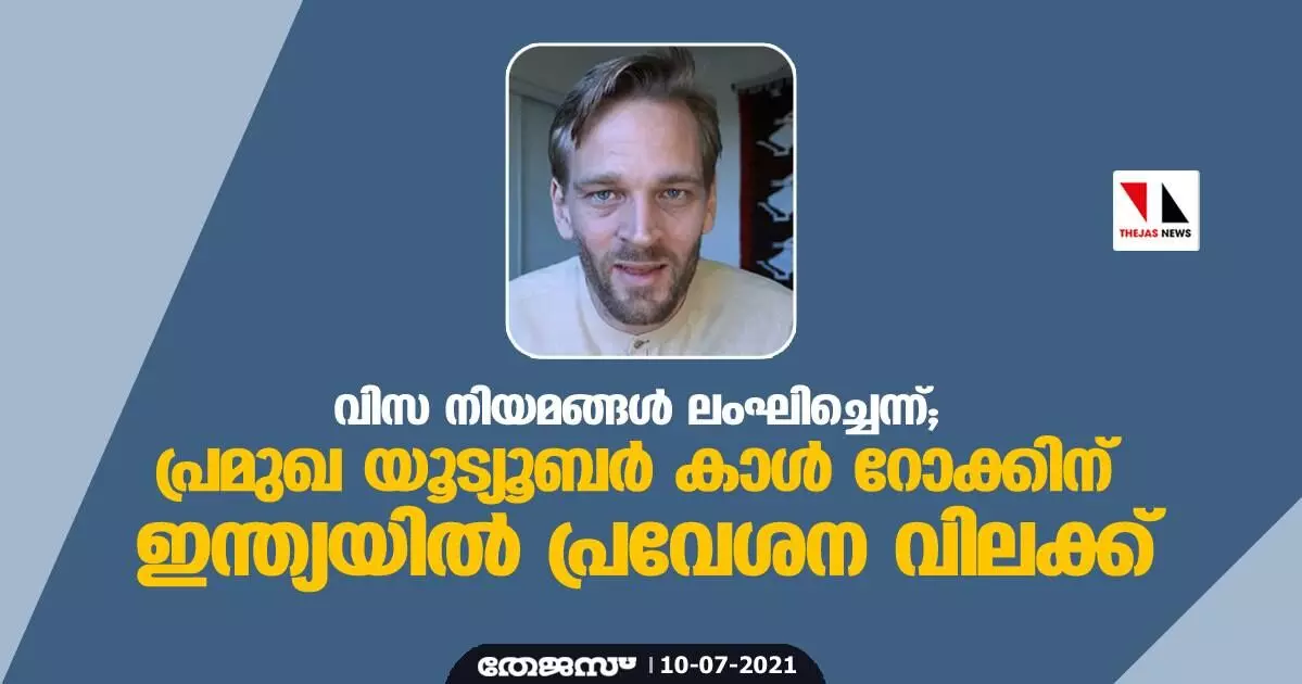 വിസ നിയമങ്ങള് ലംഘിച്ചെന്ന്; പ്രമുഖ യൂട്യൂബര് കാള് റോക്കിന് ഇന്ത്യയില് പ്രവേശന വിലക്ക്