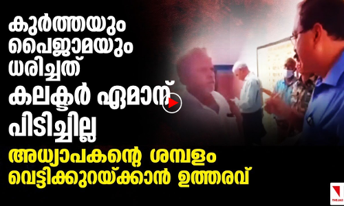 ഈ കലക്ടറേമാന് അധ്യാപകന് കൂര്ത്തയും പൈജാമയും ധരിച്ചത് ഇഷ്ടമായില്ല. പിന്നെ നടന്നത് ഇതാണ്