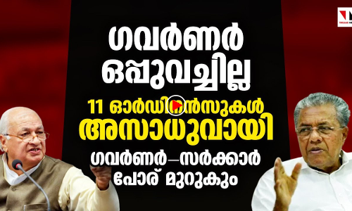 ഗവർണർ ഒപ്പുവയ്ക്കാത്ത സാഹചര്യത്തിൽ 11 ഓർഡിനൻസുകൾ അസാധുവായി. ഓർഡിനൻസുകളുടെ കാലാവധി തിങ്കളാഴ്ചയാണ് അവസാനിച്ചത്