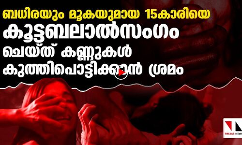 ബധിരയും മൂകയുമായ 15കാരിയെ കൂട്ടബലാല്സംഗം ചെയ്തു; കണ്ണു പൊട്ടിക്കാനും ശ്രമം