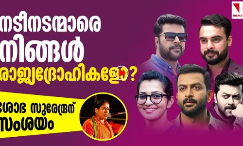 പൗരത്വ നിയമഭേദഗതിക്കെതിരേ മമ്മൂട്ടി, പൃഥ്വിരാജ്് പാര്വതി, അനൂപ് മേനോന് തുടങ്ങി താരനിരകളുടെ പ്രതികരണം. എന്നാല് അവരോട് നിങ്ങള് രാജ്യസ്നേഹികളോ രാജ്യദ്രോഹികളോ എന്നു ചോദിച്ച് ശോഭാസുരേന്ദ്രന്.