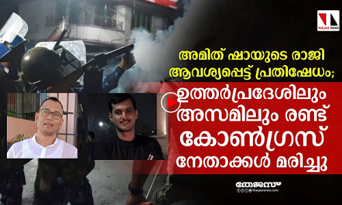 അമിത് ഷായുടെ രാജി ആവശ്യപ്പെട്ട് പ്രതിഷേധം; രണ്ട് കോണ്ഗ്രസ് നേതാക്കള് മരിച്ചു