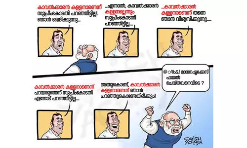 കാവല്ക്കാരന് കള്ളനെന്ന് ആവര്ത്തിച്ച് രാഹുല് ഗാന്ധി -കാര്ട്ടൂണ്: സതീഷ് ആചാര്യ
