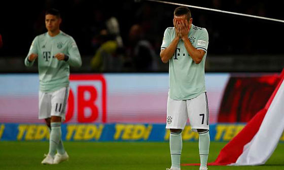 23ാം മിനിറ്റില് ഹെര്ത്താ ബെര്ലിന് ലഭിച്ച പെനല്റ്റി ലക്ഷ്യത്തിലെത്തിച്ച് ബോസ്നിയ താരം വേദാദ് ഇബ്സേവിച്ചാണ് ബയേണിന് ആദ്യ പ്രഹരം നല്കിയത്. തുടര്ന്ന് 44ാം മിനിറ്റില് സ്ലോവാക്യന് മിഡ്ഫീല്ഡര് ഓണ്േ്രട ഡുഡ കൂടി ബയേണ് വല ചലിപ്പിച്ചതോടെ ജര്മന് ചാംപ്യന്മാര് തോല്വിഭാരം പേറി. രണ്ടാം പകുതിയില് റോബനെയും സാഞ്ചസിനെയും റോഡ്രിഗസിനെയും പിന്വലിച്ച് തോമസ് മുള്ളറിനെയും ഗ്നാബ്രിയെയും സാന്്ട്രോ വാഗ്നറെയും ഇറക്കിയെങ്കിലും ഫലം കണ്ടില്ല. ലീഗില് ബയേണിന്റെ ആദ്യ പരാജയമാണിത്.