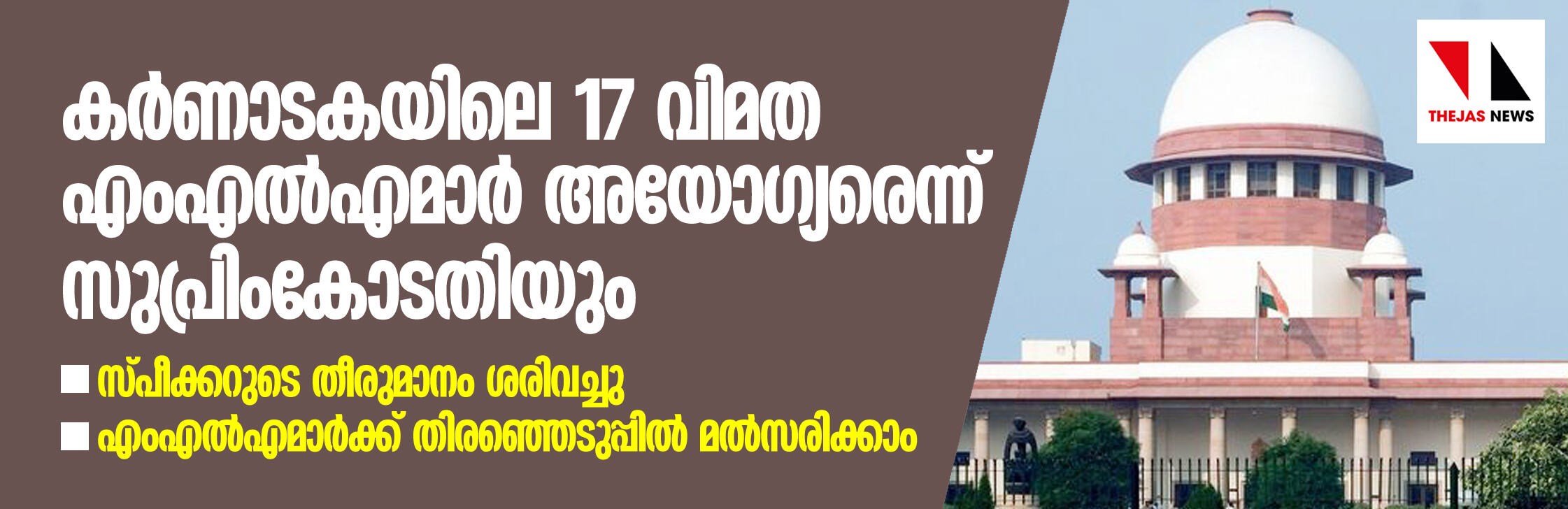 കര്ണാടകയിലെ 17 വിമത എംഎല്എമാര് അയോഗ്യരെന്ന് സുപ്രിംകോടതിയും