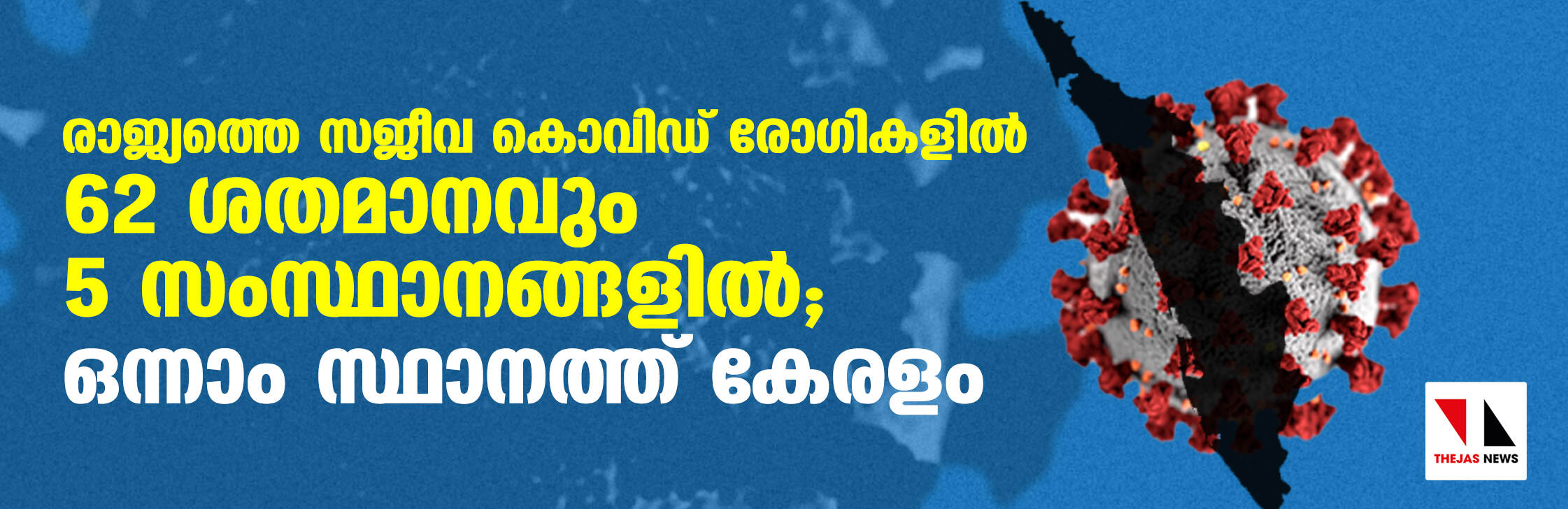 രാജ്യത്തെ സജീവ കൊവിഡ് രോഗികളില് 62 ശതമാനവും 5 സംസ്ഥാനങ്ങളില്; ഒന്നാം സ്ഥാനത്ത് കേരളം