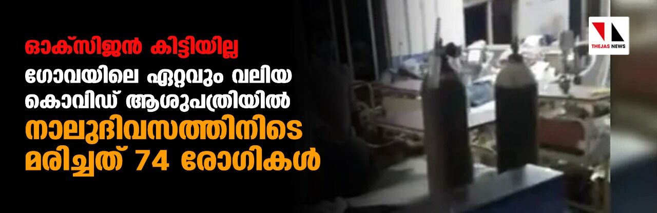 ഓക്സിജന് കിട്ടിയില്ല; ഗോവയിലെ ഏറ്റവും വലിയ കൊവിഡ് ആശുപത്രിയില് നാലുദിവസത്തിനിടെ മരിച്ചത് 74 രോഗികള്