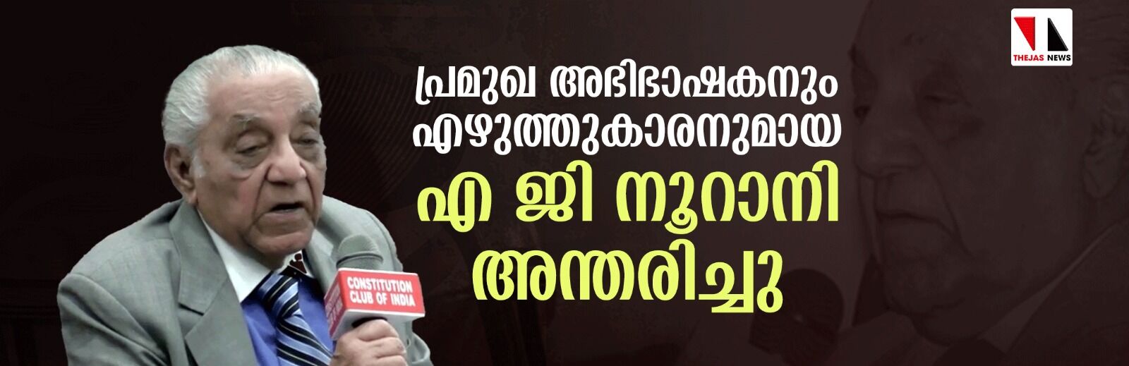പ്രമുഖ ഭരണഘടനാ വിദഗ്ധനും എഴുത്തുകാരനുമായ എ ജി നൂറാനി അന്തരിച്ചു