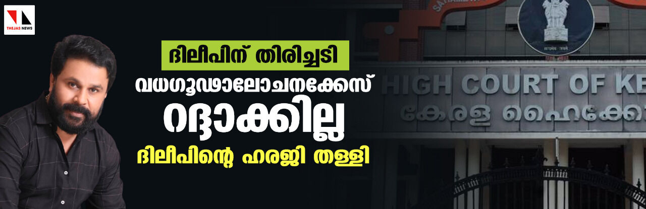 ദിലീപിന് തിരിച്ചടി ;വധഗൂഢാലോചനക്കേസ് റദ്ദാക്കില്ല; ദിലീപിന്റെ ഹരജി തള്ളി