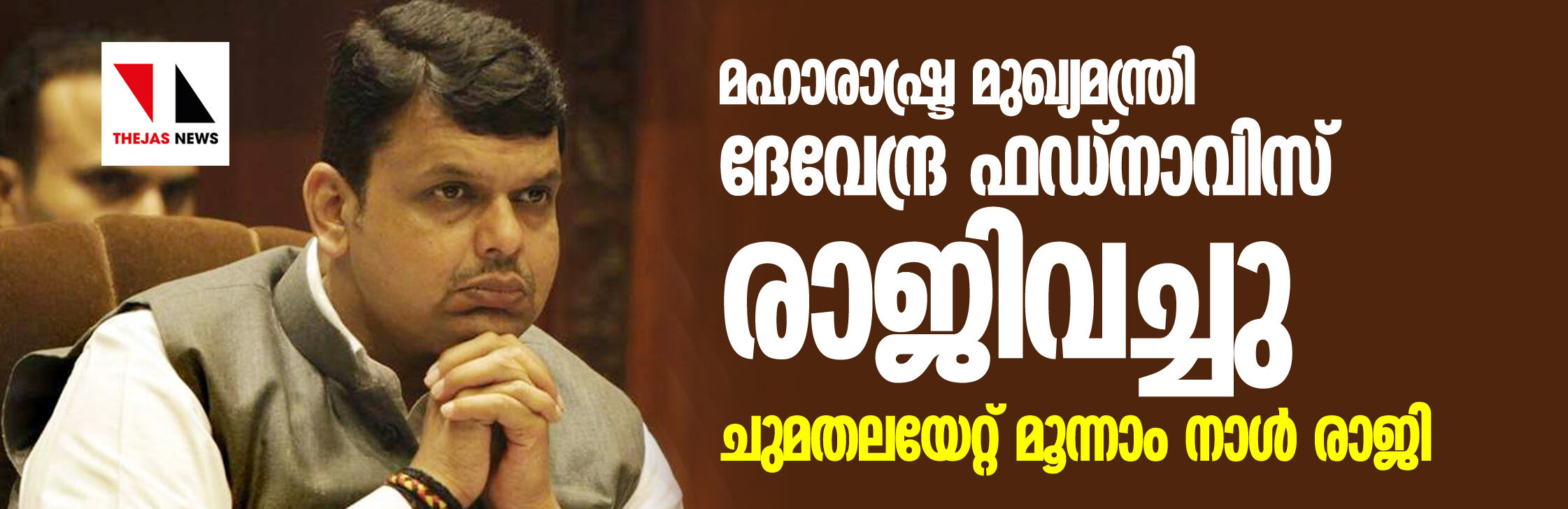 മഹാരാഷ്ട്ര മുഖ്യമന്ത്രി ദേവേന്ദ്ര ഫട്നാവിസ് രാജിവച്ചു; ചുമതലയേറ്റ് മൂന്നാം നാൾ രാജി