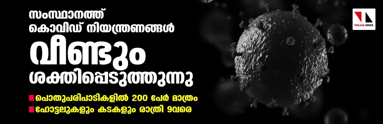 സംസ്ഥാനത്ത് കൊവിഡ് നിയന്ത്രണ ങ്ങള് വീണ്ടും ശക്തിപ്പെടുത്തുന്നു: പൊതുപരിപാടികളില് 200പേര് മാത്രം