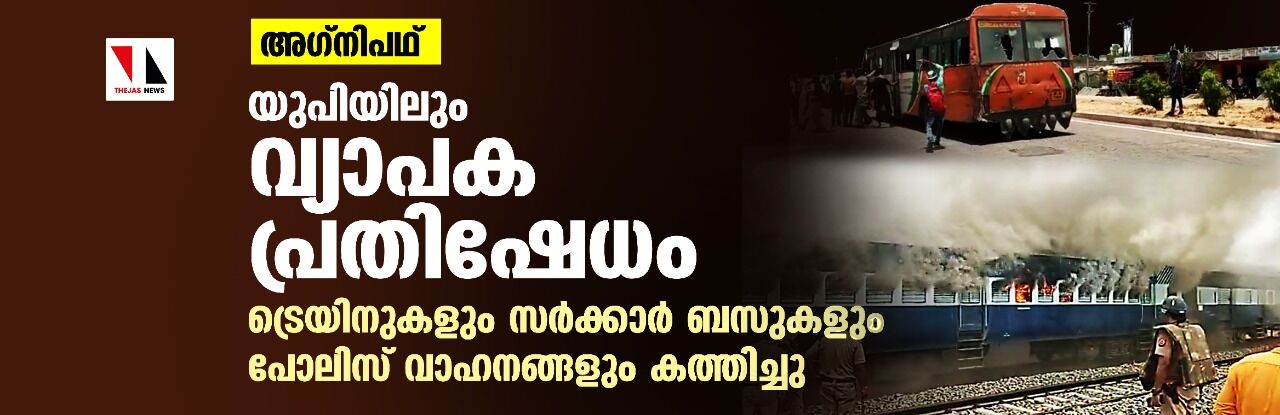 അഗ്നിപഥ്: യുപിയിലും വ്യാപക ആക്രമണം; ട്രെയിനുകളും സര്ക്കാര് ബസുകളും പോലിസ് വാഹനങ്ങളും കത്തിച്ചു