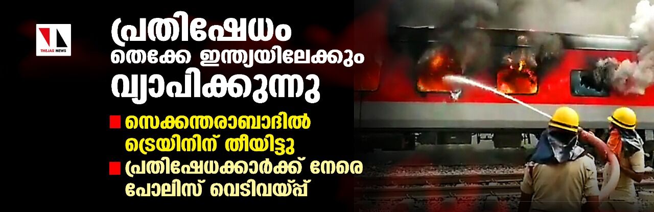 പ്രതിഷേധം തെക്കേ ഇന്ത്യയിലേക്കും; സെക്കന്തരാബാദില് ട്രെയിനിന് തീയിട്ടു, പ്രതിഷേധക്കാര്ക്ക് നേരെ പോലിസ് വെടിവയ്പ്പ്