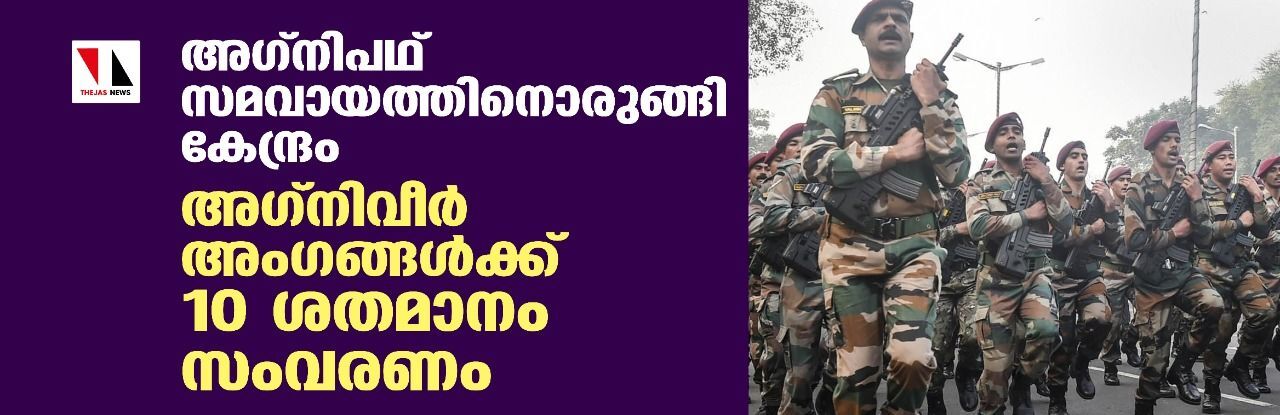 അഗ്നിപഥ്:സമവായത്തിനൊരുങ്ങി കേന്ദ്രം;അഗ്നിവീര് അംഗങ്ങള്ക്ക് 10 ശതമാനം സംവരണം