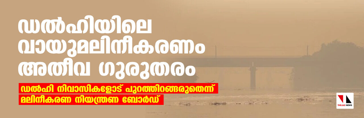 ഡല്ഹിയിലെ വായുമലിനീകരണം അതീവ ഗുരുതരം; ഡല്ഹി നിവാസികളോട് പുറത്തിറങ്ങരുതെന്ന് മലിനീകരണ നിയന്ത്രണ ബോര്ഡ്