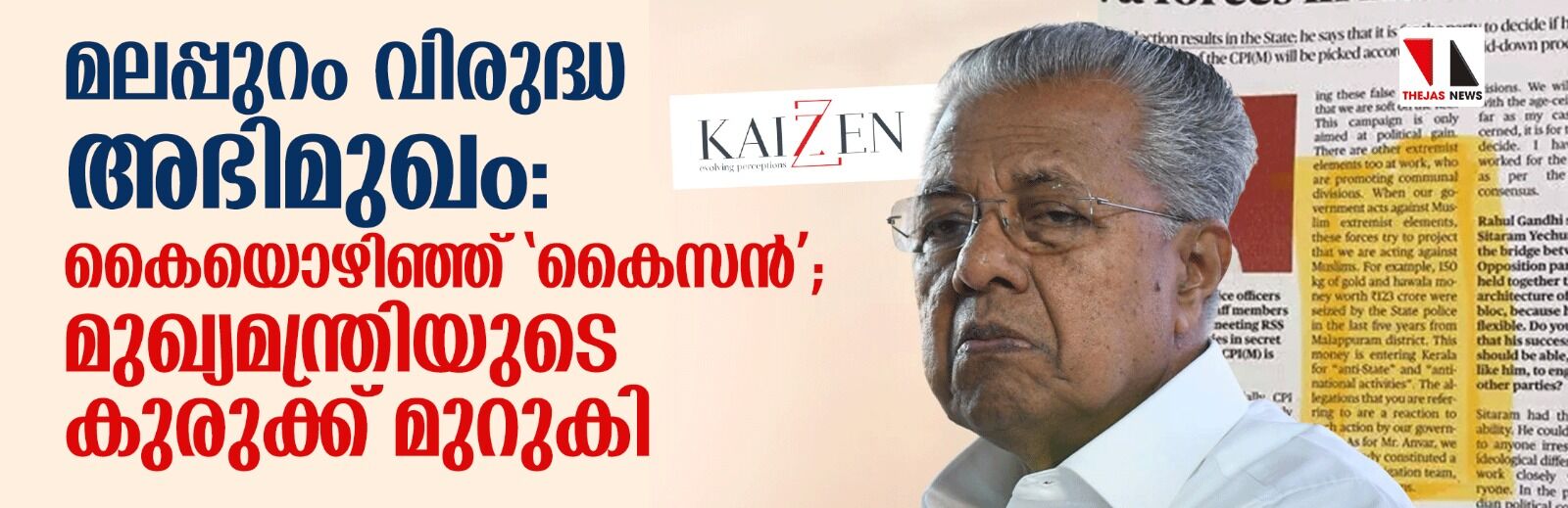 മലപ്പുറം വിരുദ്ധ അഭിമുഖം: കൈയൊഴിഞ്ഞ് 'കൈസന്'; മുഖ്യമന്ത്രിയുടെ കുരുക്ക് മുറുകി