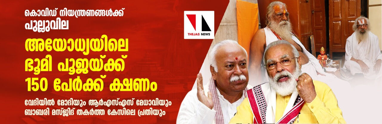കൊവിഡ് നിയന്ത്രണങ്ങള്ക്കു പുല്ലുവില; അയോധ്യയിലെ ഭൂമി പൂജയ്ക്കു 150 പേര്ക്ക് ക്ഷണം