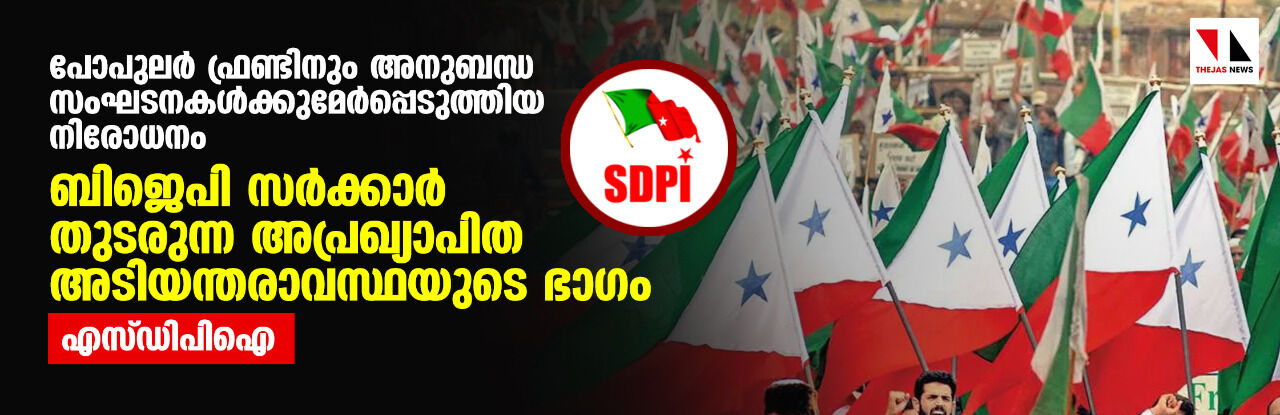 പോപുലർ ഫ്രണ്ടിനും അനുബന്ധ സംഘടനകൾക്കുമേർപ്പെടുത്തിയ നിരോധനം, ബിജെപി സർക്കാർ തുടരുന്ന അപ്രഖ്യാപിത അടിയന്തരാവസ്ഥയുടെ ഭാഗം: എസ്ഡിപിഐ
