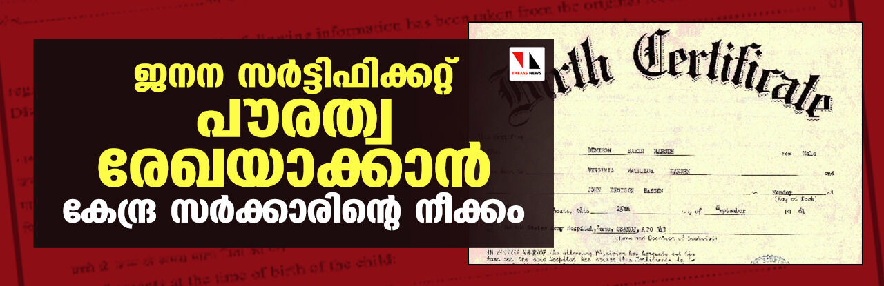 ജനന സർട്ടിഫിക്കറ്റ് പൗരത്വ രേഖയാക്കാൻ കേന്ദ്ര സർക്കാരിന്റെ നീക്കം