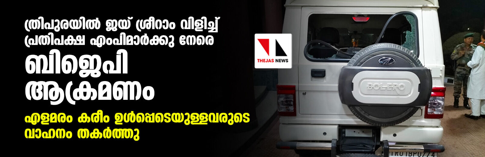 ത്രിപുരയില് ജയ് ശ്രീറാം വിളിച്ച് പ്രതിപക്ഷ എംപിമാര്ക്കു നേരെ ബിജെപി ആക്രമണം; എളമരം കരീം ഉള്പ്പെടെയുള്ളവരുടെ വാഹനം തകര്ത്തു