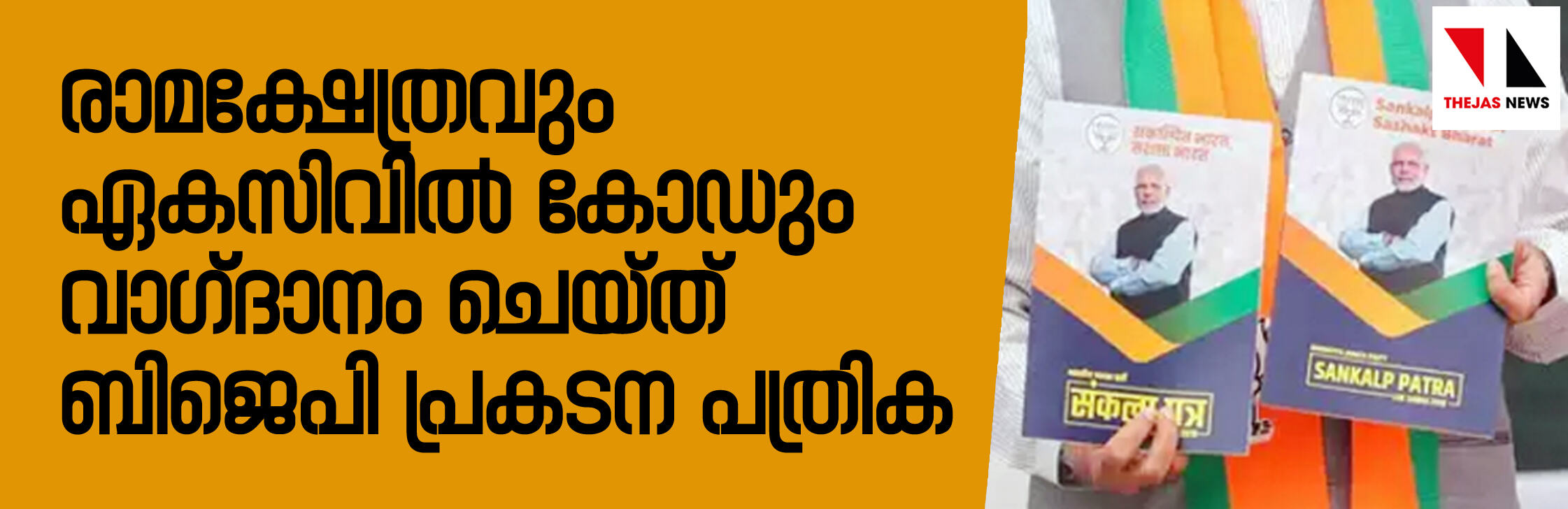 രാമക്ഷേത്രവും ഏകസിവില് കോഡും വാഗ്ദാനം ചെയ്ത് ബിജെപി പ്രകടന പത്രിക