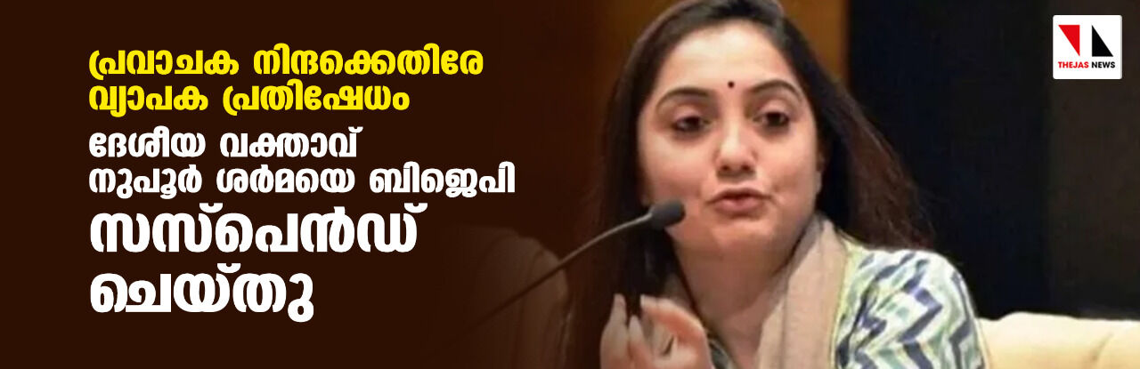 പ്രവാചക നിന്ദക്കെതിരേ വ്യാപക പ്രതിഷേധം; ദേശീയ വക്താവ് നുപൂര് ശര്മയെ ബിജെപി സസ്പെന്ഡ് ചെയ്തു
