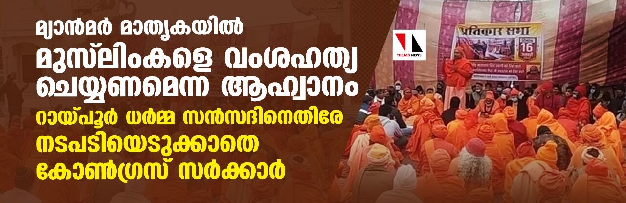 മ്യാന്മര് മാതൃകയില് മുസ് ലിംകളെ വംശഹത്യ ചെയ്യണമെന്ന ആഹ്വാനം: റായ്പൂര് ധര്മ്മ സന്സദിനെതിരേ നടപടിയെടുക്കാതെ കോണ്ഗ്രസ് സര്ക്കാര്