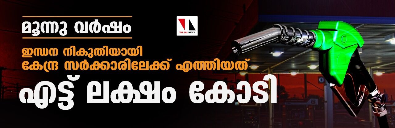 മൂന്നു വര്ഷം: ഇന്ധന നികുതിയായി കേന്ദ്ര സര്ക്കാരിലേക്ക് എത്തിയത് എട്ട് ലക്ഷം കോടി